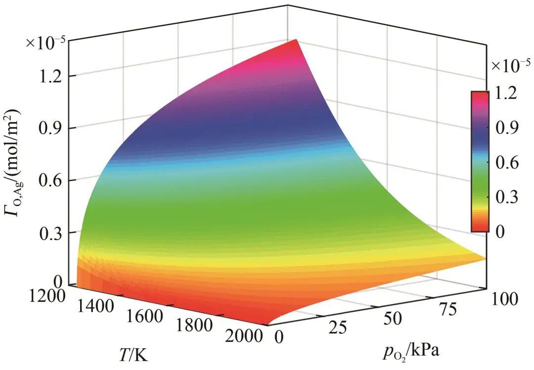 圖7表面過剩量隨溫度和氧氣壓力變化的關(guān)系