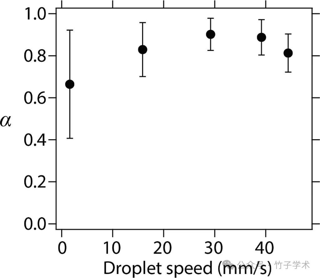 圖7是計(jì)算出的比例α與液滴速度之間的關(guān)系。