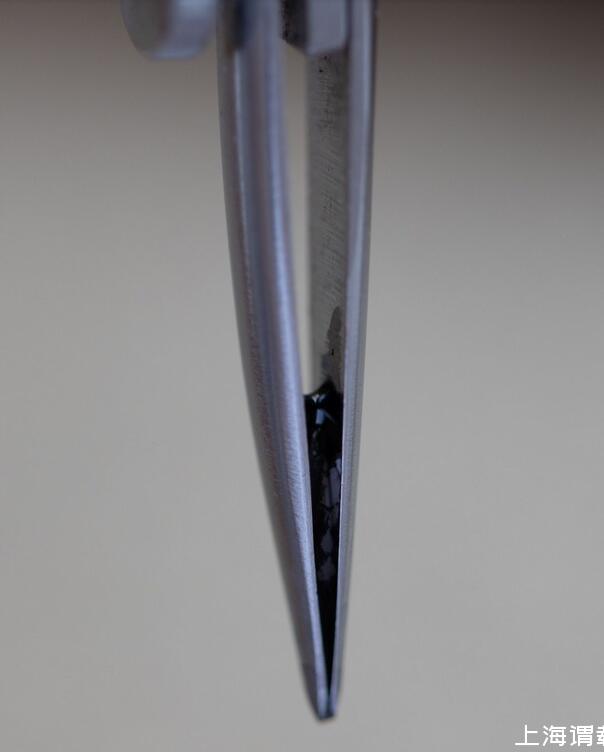 比較簡單的方法是拿小刀片調(diào)整中縫的開縫大小,和筆尖與筆舌間的距離,使更多的墨水能夠到達(dá)銥粒這邊,靠重力也能克服最后內(nèi)凹的這點距離。這一步驟俗稱“刀尖”。只要不刮花金屬鍍層,基本上整個過程還是可逆的,就算一次下來效果不滿意也有進(jìn)一步調(diào)整的余地。比如刀得太寬了,還能捏一捏再讓他緊一點。注意這里我們并不是要把中縫一味地開大,而是調(diào)整到合適的寬度,因為太寬墨水還是會留在中縫里,太窄又無法順利地從筆舌那邊引過來。