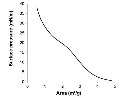 圖 3. 表面壓力-面積 (?-A) 等溫線形成于 通過傳播精漿形成空氣/緩沖液界面(n = 3,標(biāo)準(zhǔn)偏差 在 0-18.9 mN/m 范圍內(nèi)不超過 1.5 mN/m,在 1.2 mN/m 范圍內(nèi)不超過 18.9–38 mN/m)。