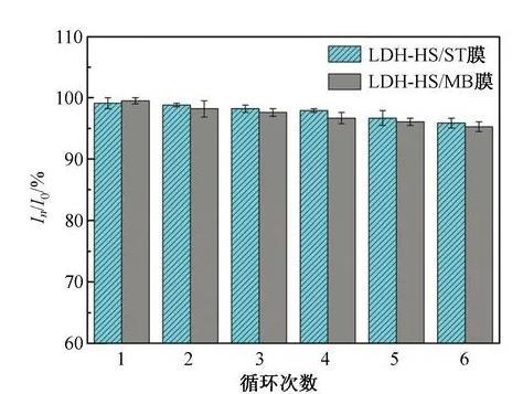 受這些啟發(fā),本研究考慮到LDH粉末的片間夾層結(jié)構(gòu)容易變形、回收困難等缺點(diǎn),預(yù)想能夠在分子水平上制備出行為可控的薄膜結(jié)構(gòu)。目前關(guān)于LDH和染料分子自組裝的文章還鮮有報(bào)道。因此,本研究工作利用陰離子交換法和LB技術(shù)成功地在氣-液界面制備了一種新型有序的LDH-HS/染料自組裝復(fù)合多層膜。