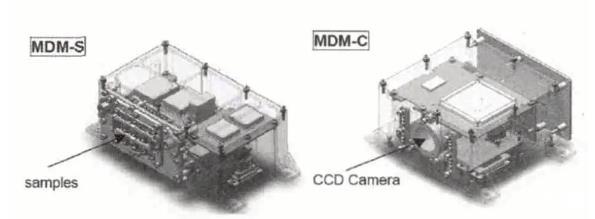 日本計劃在SLATS衛(wèi)星上搭載環(huán)境效應探測器,進行空間環(huán)境的監(jiān)測及材料暴露試驗,這是首次在50 km軌道上開展材料暴露試驗。該暴露試驗通過兩個搭載模塊實施,分別為MDM-S和MDM-C(MDM為MateriasDegradation Monitor的縮寫),其中MDM-S是一個包含9種材料被動暴露試驗的樣品盒,而MDM-C是CCD,用于對暴露試驗中樣品的退化情況進行拍照。