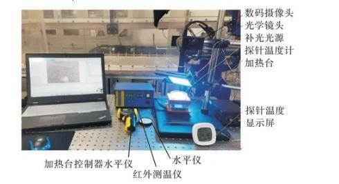 實(shí)驗(yàn)設(shè)備:數(shù)碼攝像機(jī),大恒MER-132-30GC,幀率為30幀/s;光學(xué)鏡頭,DH110-04F28X,放大倍數(shù),4X;圖像采集軟件,Daheng Galaxy Viewer;加熱臺(tái);移相觸發(fā)溫控臺(tái),溫度范圍20~450℃;干燥箱,蘇泊儀器有限公司電熱恒溫干燥箱,溫度10~300℃;紅外測(cè)溫儀,得力DL333600,-40~600℃;探針式溫度計(jì),邦弗JR-9919工業(yè)溫度計(jì);光學(xué)平臺(tái),卓立漢光SRP10-08。上述設(shè)備按圖1放置、安裝。