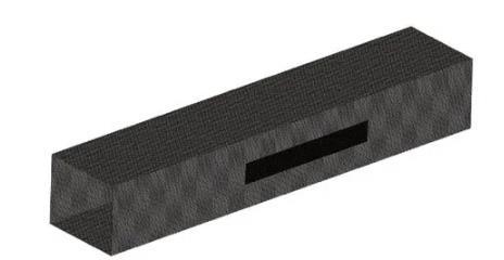 為了避免系統(tǒng)回流的影響,建立一個(gè)長×寬×高為50 mm×10 mm×10 mm的流場(chǎng)模型,采用結(jié)構(gòu)化網(wǎng)格,如圖2所示。通過fluent的Eulerian模型、層流模型、Carreau黏度模型、壓力求解器,對(duì)PS/POE液液兩相流進(jìn)行仿真分析。由于實(shí)驗(yàn)時(shí)間較長,采用瞬態(tài)求解法,忽略重力、浮力、密度差、加熱不均帶來的影響。入口設(shè)置為速度邊界條件,出口邊界為壓力出口,流場(chǎng)上下前后4個(gè)面為周期邊界條件。為了確保仿真過程的準(zhǔn)確性和經(jīng)濟(jì)性,以及獲得兩相流真實(shí)的分布情況,首先對(duì)網(wǎng)格無關(guān)性進(jìn)行研究??紤]3種數(shù)量(150×104、190×104、230×104個(gè))的網(wǎng)格進(jìn)行研究。當(dāng)網(wǎng)格數(shù)量太少時(shí),無法細(xì)致描述液滴表面處的形態(tài)(橢球型)。通過數(shù)值模擬,分析了液滴回縮時(shí)間t。從表2中可以看出,網(wǎng)格數(shù)量對(duì)于計(jì)算結(jié)果的影響很小,同時(shí)考慮到數(shù)值模擬計(jì)算的時(shí)間和經(jīng)濟(jì)性,采用190×104個(gè)網(wǎng)格。收斂時(shí)間的判斷依據(jù)殘差圖以及液滴形態(tài)兩個(gè)標(biāo)準(zhǔn),計(jì)算每一步的殘差值設(shè)定為10-3,同時(shí)設(shè)置主視、俯視、左視3個(gè)監(jiān)測(cè)面(均位于球心處)用來觀察液滴形態(tài)。形態(tài)為球形時(shí),計(jì)算收斂。