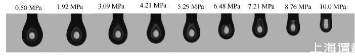 圖5 100℃時(shí)CO2-甲苯體系液滴形狀隨壓力的變化圖