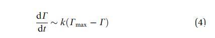 當(dāng)系統(tǒng)接近飽和時(shí),G(t) 的下降必須 隨著表面變得擁擠,請(qǐng)減速。 的濃度 吸附在表面下方,然后失去平衡 與吸附的物種和動(dòng)力學(xué)受到限制 吸附屏障。 然后一級(jí)動(dòng)力學(xué)過(guò)程導(dǎo)致:
