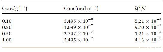 表 2 不同濃度的速率常數(shù) k(1/s) 值 由圖 6 中的實(shí)驗(yàn)曲線(xiàn)計(jì)算