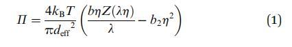 吸附在流體-流體界面上的粒子與 并產(chǎn)生表面壓力 (P),即 3D 系統(tǒng)中壓力的 2D 模擬。 通過(guò)擴(kuò)展這個(gè) 進(jìn)一步類(lèi)比,也可以將這個(gè)表面壓力聯(lián)系起來(lái) 通過(guò)狀態(tài)方程到其他狀態(tài)參數(shù),如數(shù)密度和溫度。 用于吸附膠體顆粒 在流體-流體界面上,最簡(jiǎn)單的近似可能是 2D硬盤(pán)。 狀態(tài)方程 (EOS) 為一個(gè) 組件系統(tǒng)根據(jù)密度相關(guān)性給出 壓縮系數(shù) Z。文獻(xiàn)中充滿(mǎn)了 提供表達(dá)的多種方法 EOS 2D 硬盤(pán)液。 Mulero 等人 27,28 提供了一個(gè)簡(jiǎn)潔的 回顧和比較所有這些狀態(tài)方程。