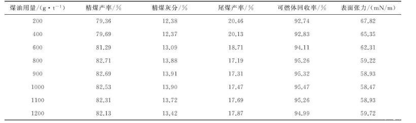 表2煤油對(duì)浮選和表面張力的影響試驗(yàn)結(jié)果表