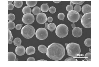 采用掃描電子顯微鏡對實(shí)施例1所制備的霧化粉體進(jìn)行形貌表征,結(jié)果如圖1所示。從圖1可以看出,霧化粉體的粒徑較小,較多的粒徑在50μm左右,在霧化粉體表面粘合有金屬摻雜劑。