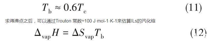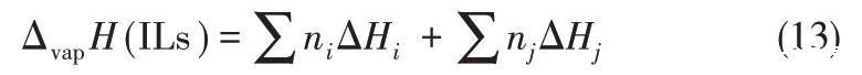 2008年,Verevkin[71]開發(fā)了一種基于經(jīng)驗(yàn)公式的簡(jiǎn)單相加法來計(jì)算ILs的蒸發(fā)焓,該焓被分解為構(gòu)成元素的主要成分和輔助成分的校正(基于結(jié)構(gòu)上的特殊性,例如CF3基團(tuán)或環(huán)狀結(jié)構(gòu)的存在)