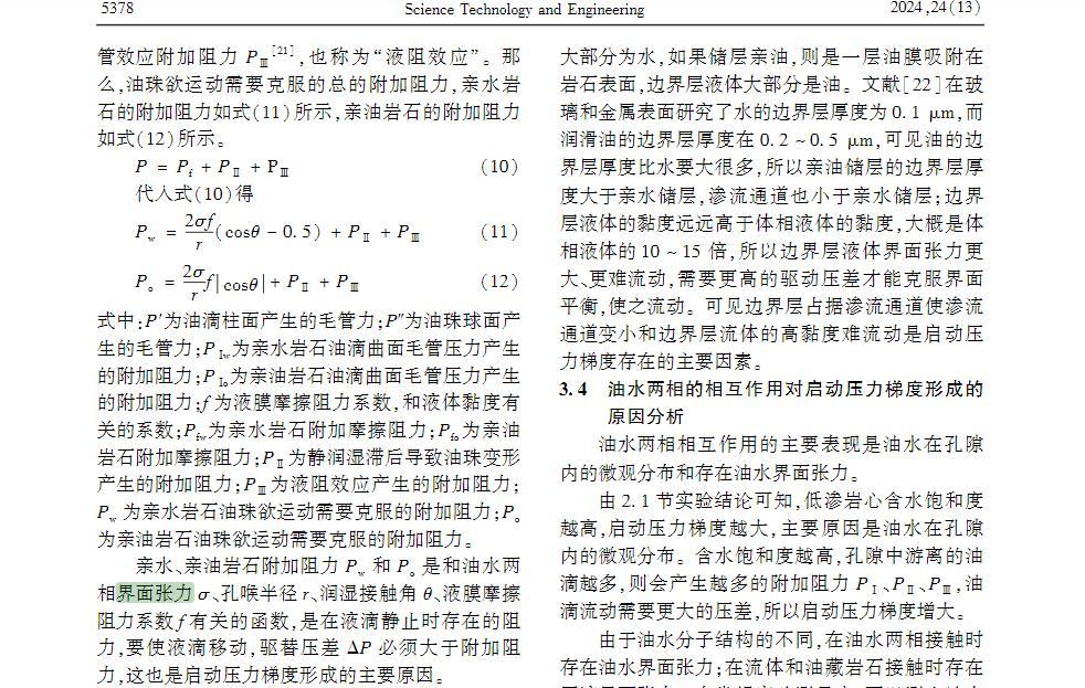 油水兩相的相互作用對啟動(dòng)壓力梯度形成的原因分析