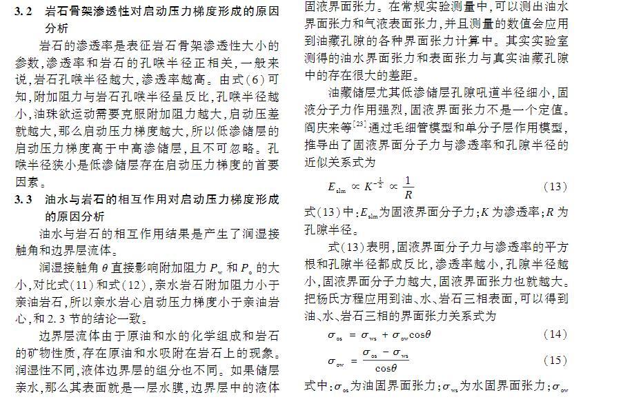 油藏儲(chǔ)層油水界面張力是形成啟動(dòng)壓力梯度的微觀成因