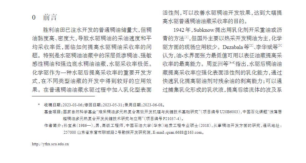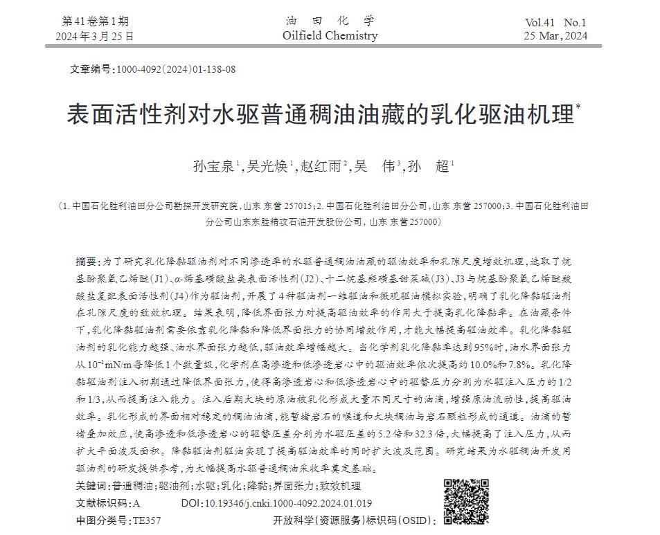 研究結果為水驅稠油開發(fā)用驅油劑的研發(fā)提供參考,為大幅提高水驅普通稠油采收率奠定基礎。