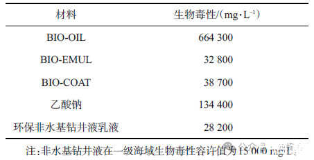 表2環(huán)保非水基鉆井液乳液組分及體系的生物毒性