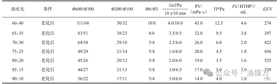 表4油水比對鉆井液性能的影響
