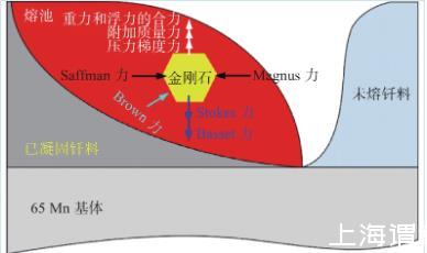 液態(tài)釬料的橫向速度使金剛石顆粒兩邊的相對(duì)速度不同,使金剛石顆粒發(fā)生旋轉(zhuǎn),并帶動(dòng)周圍流體流動(dòng),存在Magnus力FM為
