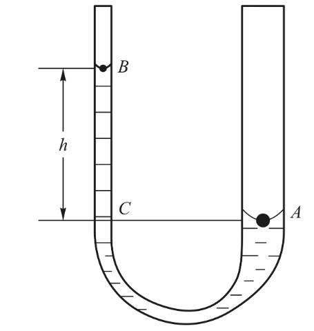 pc為液面下C點處的壓強。此外,在流體靜力學中,當液體靜止時U型管內(nèi)液面下A點與同水平面的C點壓強相同,即Pa=Pc.所以綜合以上各式可得