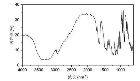 使用ATR附件,掃描背景去除雜峰后將取少量多羥基烷基季銨鹽放在測試位置開始進行紅外光譜掃描。在3300nm1附近的寬吸收峰可歸屬為羥基吸收峰,亞甲基的吸收峰分別位于2900nm1和1200~1400nm1附近,1100nm1處為CF的吸收峰區(qū)。
