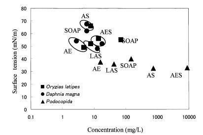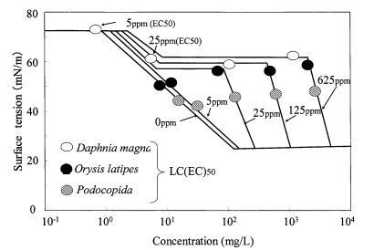 水稻和大水蚤的gtox值很大 因表面活性劑的種類而異。 結(jié)果,很明顯,一個 表面活性劑的急性水生毒性不能簡單地 與表面活性劑溶液的表面張力有關(guān), 忽略表面活性劑的種類。