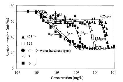 圖 7 水硬度對表面張力的影響 肥皂曲線。