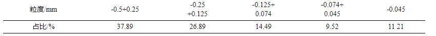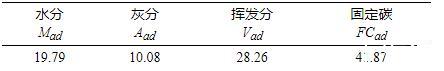 本實驗煤樣選自內(nèi)蒙古勝利煤田,工業(yè)分析結(jié)果見表1,粒度組成見表2。