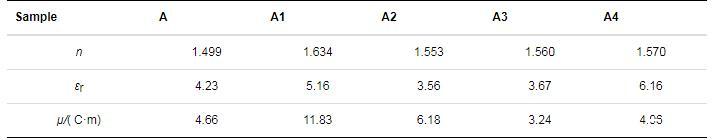 式中:μ(C·m)為偶極矩;NA(6.022×1023mol-1)為阿伏伽德羅常數(shù);n為折射率;ρ(1.2 g/cm3)為密度;k(1.381×10-23J/K)為波茲曼常數(shù);T(K)為溫度;εr為介電常數(shù);M為平均相對分子質(zhì)量。