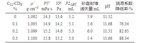 4.C12-CDS與現(xiàn)場(chǎng)用無固相硅酸鹽鉆井液具有良好的配伍性能,可提高其潤(rùn)滑性能。