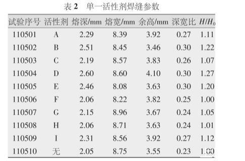 2.2活性劑對焊縫成形的影響