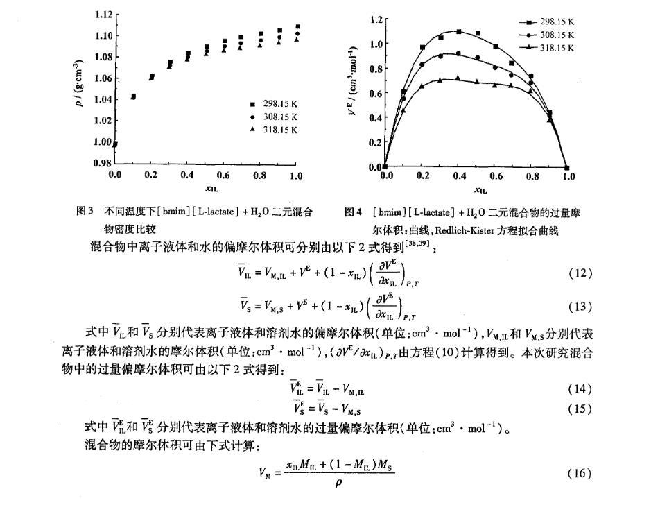 圖5[bmim][L-lactate]+H2 O二元混合物中IL過(guò)量偏摩爾體積