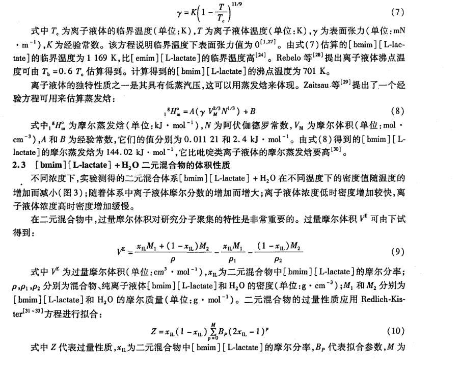 2.3[bm im][L-lactate]+H2O二元混合物的體積性質(zhì)