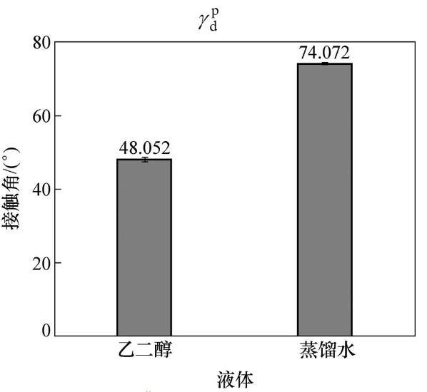 調(diào)和平均法計(jì)算CBT500與DBTL界面張力(12),CBT500、DBTL表面張力()、極性分量(p)、色散分量(d)研究是基礎(chǔ)。CBT500色散分量、極性分量通過(guò)引入2種測(cè)試液體求解二元二次方程組,DBTL色散分量、極性分量通過(guò)研究DBTL在PP薄板上靜態(tài)接觸角并結(jié)合表面張力是材料極性分量、色散分量之和進(jìn)行二元二次方程組求解。