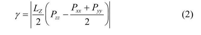 對(duì)于表面活性劑來說降低界面張力的能力是考察其性能好壞的重要指標(biāo)之一,下面通過考察不同體系的界面張力和界面寬度來進(jìn)一步說明OPES的界面性能,如表1所示。對(duì)于界面張力可以利用式(2)來計(jì)算,其中LZ為盒子高度;Pxx、Pyy、Pzz分別為x、y、z方向的壓力。