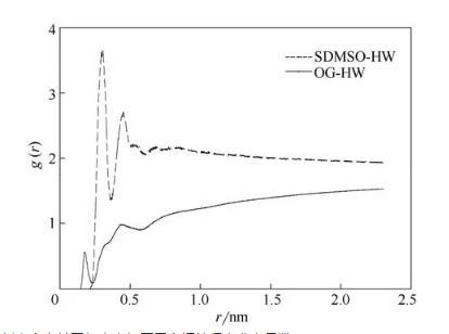 圖5 S80中表面活性劑中親水基團(tuán)與水中氫原子之間的徑向分布函數(shù)