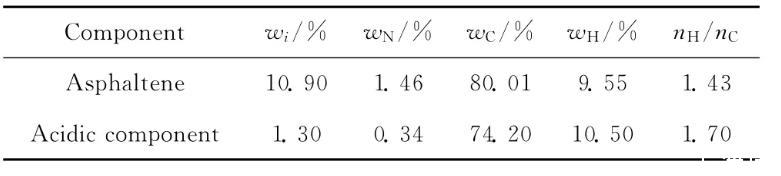 勝利原油中瀝青質(zhì)及酸性組分的含量及其元素分析結(jié)果列于表1。