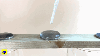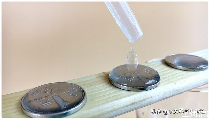 正是由于這個(gè)力,硬幣上的水滴能夠凸起來,在極限值到來之前,液滴都不會倒塌。