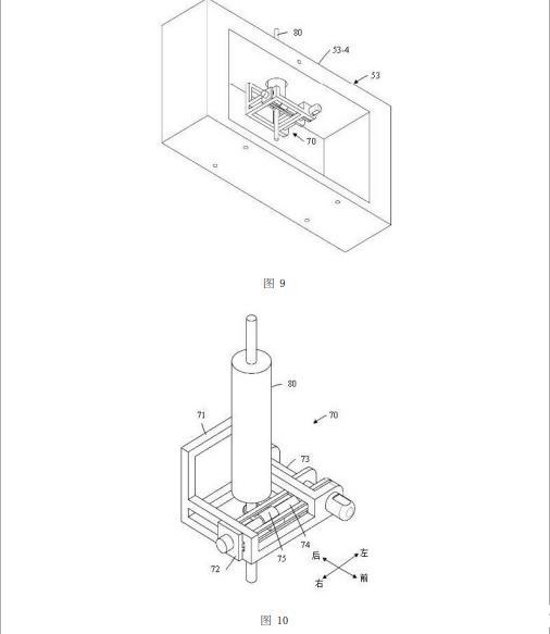 如圖9所示,注射器調(diào)節(jié)組件70固定設置于第三窗形件53的內(nèi)部空腔內(nèi)。