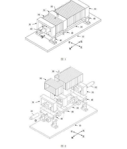 遮光罩90的上壁板、下壁板、左壁板和右壁板都為可伸縮的波紋板,使得當?shù)谌靶渭?3沿著第一絲桿21前后移動時,遮光罩90能夠隨著第三窗形件53伸長或者縮短。
