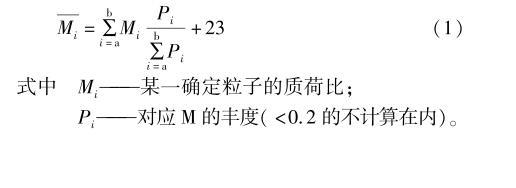 由圖2可知,組分b相對(duì)分子質(zhì)量的荷質(zhì)比主要散布于400~600的范圍內(nèi),可依據(jù)以下公式計(jì)算出平均相對(duì)分子質(zhì)量。