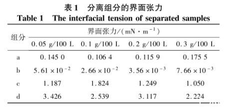 各個(gè)濃度的組分的界面張力見(jiàn)表1。