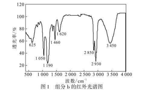 由上可知,只有組分b的界面張力達(dá)到超低,說(shuō)明石油磺酸鹽中主要起作用的物質(zhì)集中在組分b中,因此對(duì)組分b采用紅外光譜、質(zhì)譜、核磁共振等方法測(cè)定其結(jié)構(gòu),并通過(guò)理論計(jì)算與實(shí)驗(yàn)數(shù)據(jù)相結(jié)合,推斷組分b的大致分子結(jié)構(gòu)。