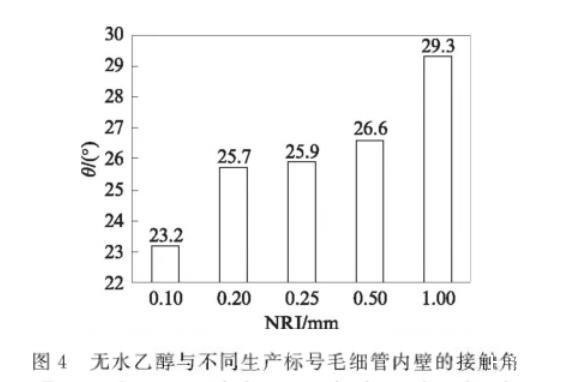 圖4無水乙醇與不同生產(chǎn)標(biāo)號(hào)毛細(xì)管內(nèi)壁的接觸角