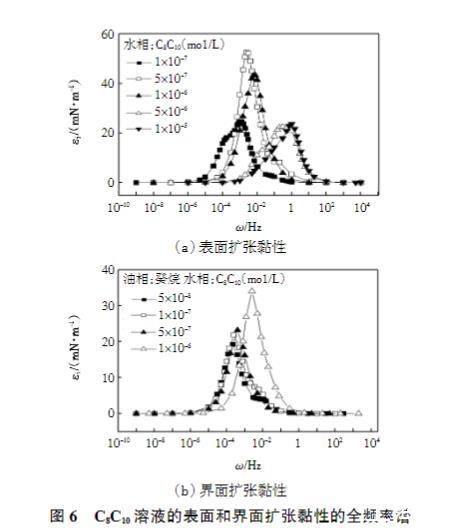 圖6 C8C10溶液的表面和界面擴(kuò)張黏性的全頻率譜