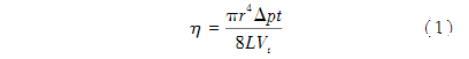 式中:r為毛細(xì)管半徑;t為液體流經(jīng)毛細(xì)管的時間;L為毛細(xì)管長度;Vt為t時間內(nèi)液體所流過的體積;Δp為液體上下液面的壓力差。毛細(xì)管黏度計(jì)使用方便,但它受剪切速率限制(一次只能測量對應(yīng)一個剪切速率的黏度),并不適合肺液體或者黏液等非牛頓液體黏度的測量。