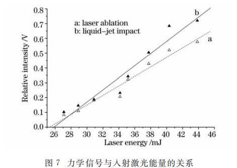 圖7力學(xué)信號(hào)與入射激光能量的關(guān)系