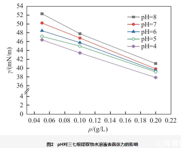 不同質(zhì)量濃度、pH、鹽度對(duì)三七根提取物水溶液表面張力的影響(二)