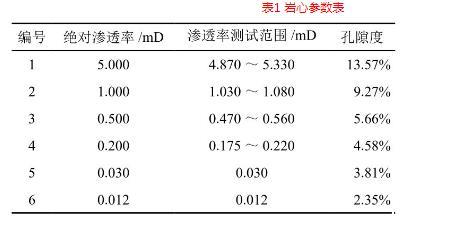 表1巖心參數(shù)表