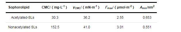 表4乙酰化SLs和去乙?;疭Ls在氣液界面上的吸附參數(shù)