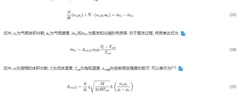 和為蒸發(fā)和冷凝的傳質率。對于蒸發(fā)過程,傳質表達式為