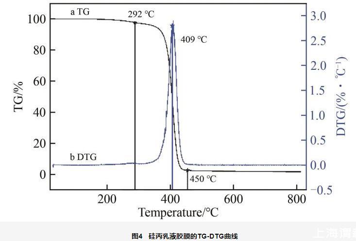 圖4硅丙乳液膠膜的TG-DTG曲線